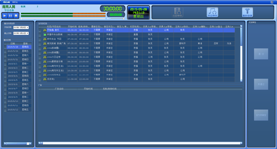 1、根据系统时间,自动加载相应的节目单,安编排好的顺序将节目逐个播出,并自动插播报时节目、定点广告、定点新闻等节目。