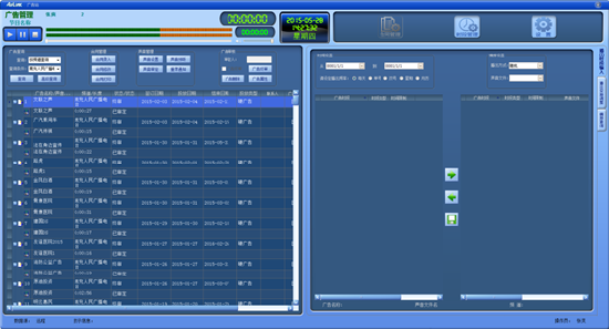 广告管理包括广告合同建立,声音文件制作,声音文件审定,广告编排,费用设置及广告的初审﹑终审等功能。独特的时段设计可以安排任意广告在任意时间段自动定时播出,也可以使广告在任意时间段自动停止,编排非常方便,可以按日期,星期,月历编排,还可以对任意时间段的多个广告改变播出次序,以达到最佳播出效果。